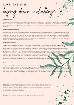 Wondering: Jesus refused to allow His Father’s house to continue as ‘a den of robbers’, but turned it back to a ‘house of prayer.’ To where has my heart wandered, and does it need to be brought back to closeness with Jesus?