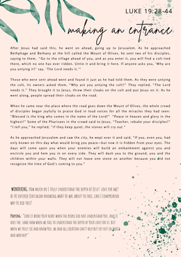 Wondering: How much do I truly understand the depth of Jesus’ love for me? As He entered Jerusalem knowing what He was about to face, can I comprehend why He did this?