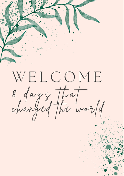 8 days that Changed the World is a series of eight consecutive bible readings from Luke’s gospel that begin on “Palm Sunday” (the Sunday before Jesus died) and continue to his resurrection the following Sunday.